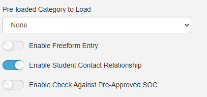 If you are using the Student Contact Relationship option then you do not need to set the preloaded category to Student. Leave that field blank. More information on the Student Contact Relationship option is below.