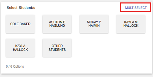 - Select multiple student names. Selected students will appear highlighted.